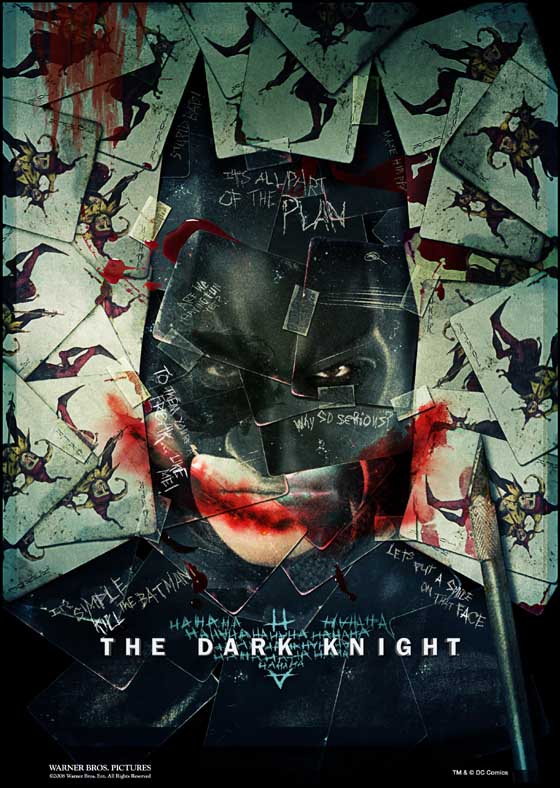 O segundo filme de Christopher Nolan da trilogia do Batman recebeu uma das campanhas mais elaboradas da sétima arte ao envolver ARGs, virais e outras estratégias que ajudaram na impressionante bilheteria. Mas o bom e velho cartaz não ficou atrás ao desconstruir a imagem do homem morcego no seu material de divulgação.