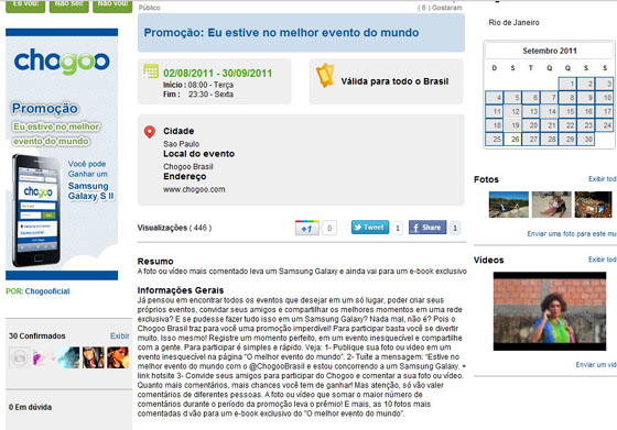 E tem mais: a rede vai premiar com um Samsung Galaxy quem tiver mais comentários em uma foto ou vídeo de um evento inesquecível, postado no evento da promoção.
