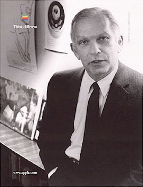 Como diz uma passagem do texto, a campanha selecionou ao longo dos anos personalidades que “empurram a raça humana para a frente”. Escolas públicas recebiam gratuitamente da própria Apple os cartazes para serem pendurados nas paredes para servir de inspiração aos alunos. Espero que a TBWA\Chiat\Day ressuscite a campanha por um momento para incluir o eterno mentor da Apple na galeria dos que pensam diferente.