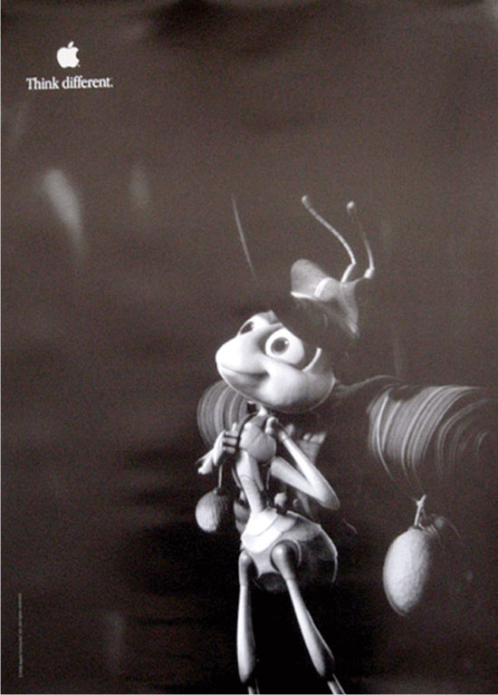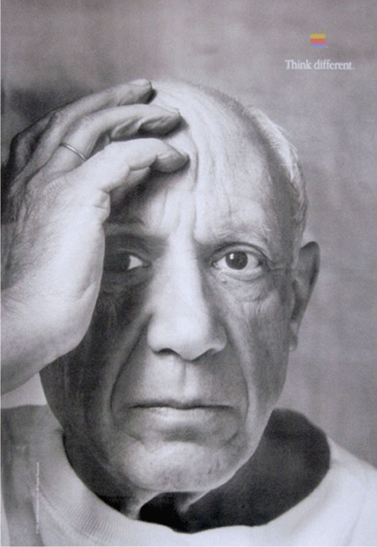 Um dos grandes momentos da empresa foi a campanha Think Different, um dos meus cinco melhores comerciais de Cannes, que ajudou a Grande Maçã a sair da crise no final do século passado. Certa vez, Jobs declarou: ela só teve 15,30, talvez 60 segundos para restabelecer a imagem da Apple contra-cultura que havia perdido durante os anos 90.