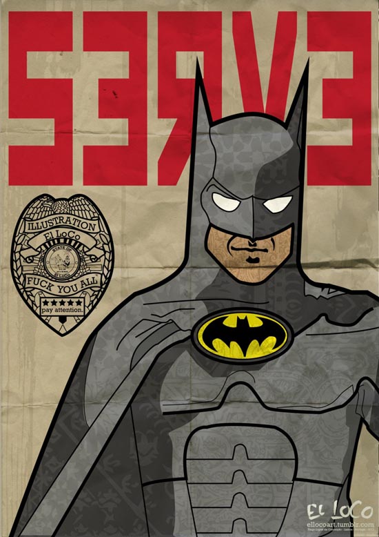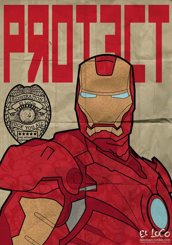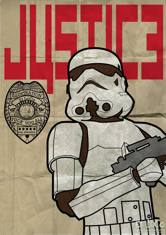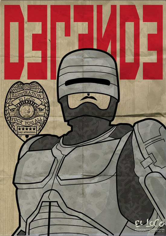 O estudante de design Tiago Lopes, “El LoCo”, criou algumas séries de cartazes e postou no seu tumblr vários trabalhos de qualidade usando outros personagens além do Homem de Ferro, Batman, Robocop e Stormtropper. Os primeiros são da série “Law e Order” e os últimos de outras séries. Será que você pegou a referência da Pepsi ser considerada a “bebida de 2015”?