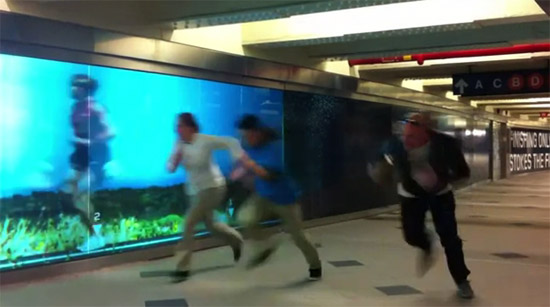 A Asics e agência Vitro aproveitaram a maratona de Nova York para criar uma ação interativa para promover a inauguração na loja da cidade. Um painel de 20 metros de comprimento foi instalado no metrô Columbus Circle para que as pessoas pudessem disputar uma corrida virtual com o maratonista Ryan Hall.