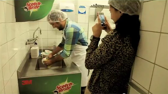 A Scotch-Brite é a marca líder de esponjas multiuso, mas detectou que a marca não possui muita influência entre os jovens. Para se aproximar deste público-alvo, a Grey 141 de São Paulo criou uma ação bem interessante em bares e restaurantes da cidade.