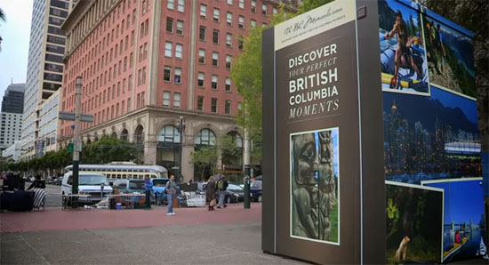 A província canadense Britsh Columbia colocou em uma rua de San Francisco uma grande máquina de 14 metros de altura para oferecer mimos com diferentes tamanhos para incentivar o turismo do local.