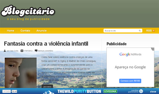 Para promover a interação de seus fãs no Facebook, a fanpage disponibilizou o The Wild Purity Button para quem curte a página ter condições de mudar o fundo de qualquer site ou blog instalando o botão no navegador, como eu fiz com o meu.