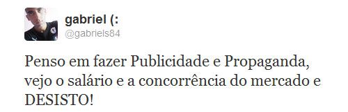 Realmente o salário do publicitário está vergonhoso. Quem ganhou dinheiro no passado, hoje já não ganha tanto quanto se ganhou um dia; agora quem ainda não ganhou dinheiro, dificilmente vai ganhar. É triste ver que tem áreas na publicidade que quer pagar menos do que um garçom ganha (não desmerecendo a profissão) e saber que você fez uma faculdade, se especializou de várias maneiras e vai trabalhar mil vezes mais que um garçom sem direito a hora extra. Viramos escravos da publicidade que recebe ajuda de custo para viver. Tem Agência oferencendo R$ 1.500 para uma vaga de Gerente com uma lista enorme de competências que a pessoa precisa ter para o cargo e ainda a contratação é PJ. Pelo amor de Deus, quem aceitar um trabalho deste vai se endividar para trabalhar, pois este salário não cobre os gastos mensais de uma vida digna de ninguém. Muitos vão desistir da profissão na hora que cair a ficha. É uma pena que teremos que chegar a este ponto para voltarmos a receber um salário justo de uma profissão que é maravilhosa, mas também não podemos esquecer que é bastante dura porque são horas de trabalho por dia, sem ganhar hora extra, sem ver a sua família, sem ver seus amigos, sem `as vezes conseguir ver uma televisão, ou ter um final de semana somente para você para nem ganhar dinheiro em troca. Será que vale a pena? Fica a minha reflexão.