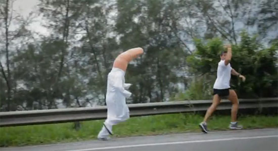 Isso mesmo: pra incentivar a realização do exame entre os homens com mais de 40 anos, colocaram um dedo gigante para correr atrás dos atletas vestido com macacão que tinha a seguinte mensagem: melhor não evitar. Faça o exame de próstata. Mesmo assim, como você verá no vídeo, alguns caras meio que resistiram a esse toque (desculpe, não resisti ao trocadilho).