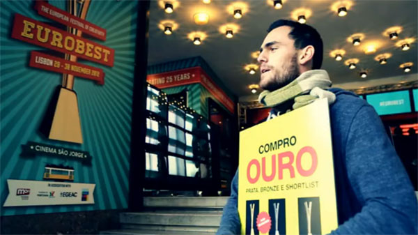 Como no país está havendo a tendência entre as lojas de comprar ouro para combater a crise, a agência (que não enviou nenhum trabalho para concorrer no festival) transformou um dos funcionários em homem-sanduíche para distribuir na porta do evento folheto com o seguinte texto: Se você ainda não enviou nada para Eurobest, não deixe que este pequeno detalhe estragar a festa. Tire proveito da crise e compre uma estatueta. Afinal, ninguém vai saber como você conseguiu. Cole este folheto na sua camiseta e boa sorte.